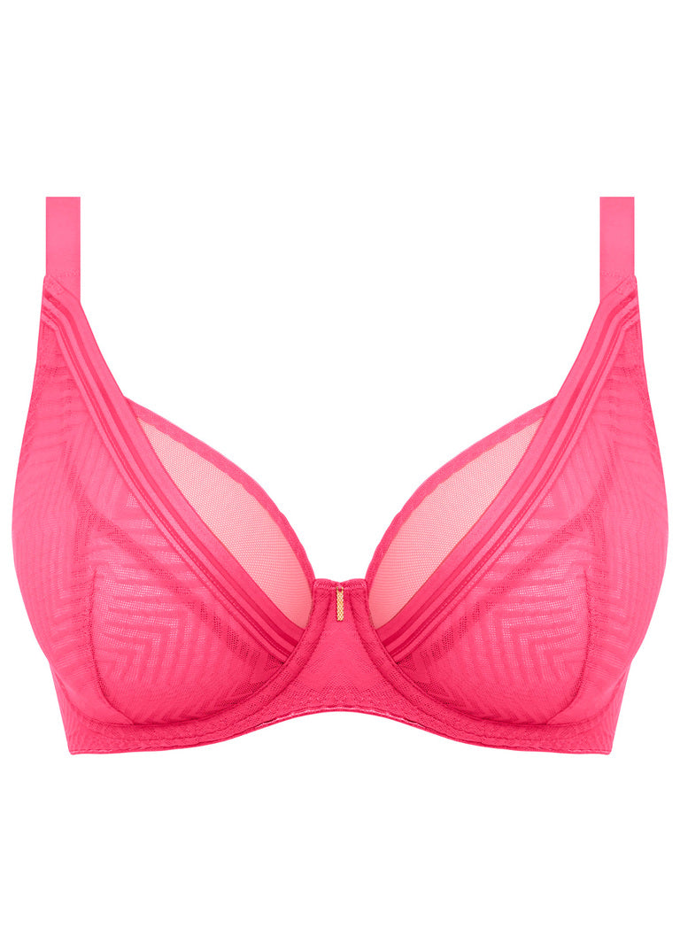 Love is in the air with Freya's Tailored High Apex Bra in our Love Potion hue. Available in a passionate hot pink colourway, this bestselling style is one of our Freya Most-Loved collections. Featuring a flattering low centre front and stunning semi-sheer fabric for a lighter look without the loss of support. This High Apex Bra is a fun and flirty addition to every fuller bust bra-drobe.